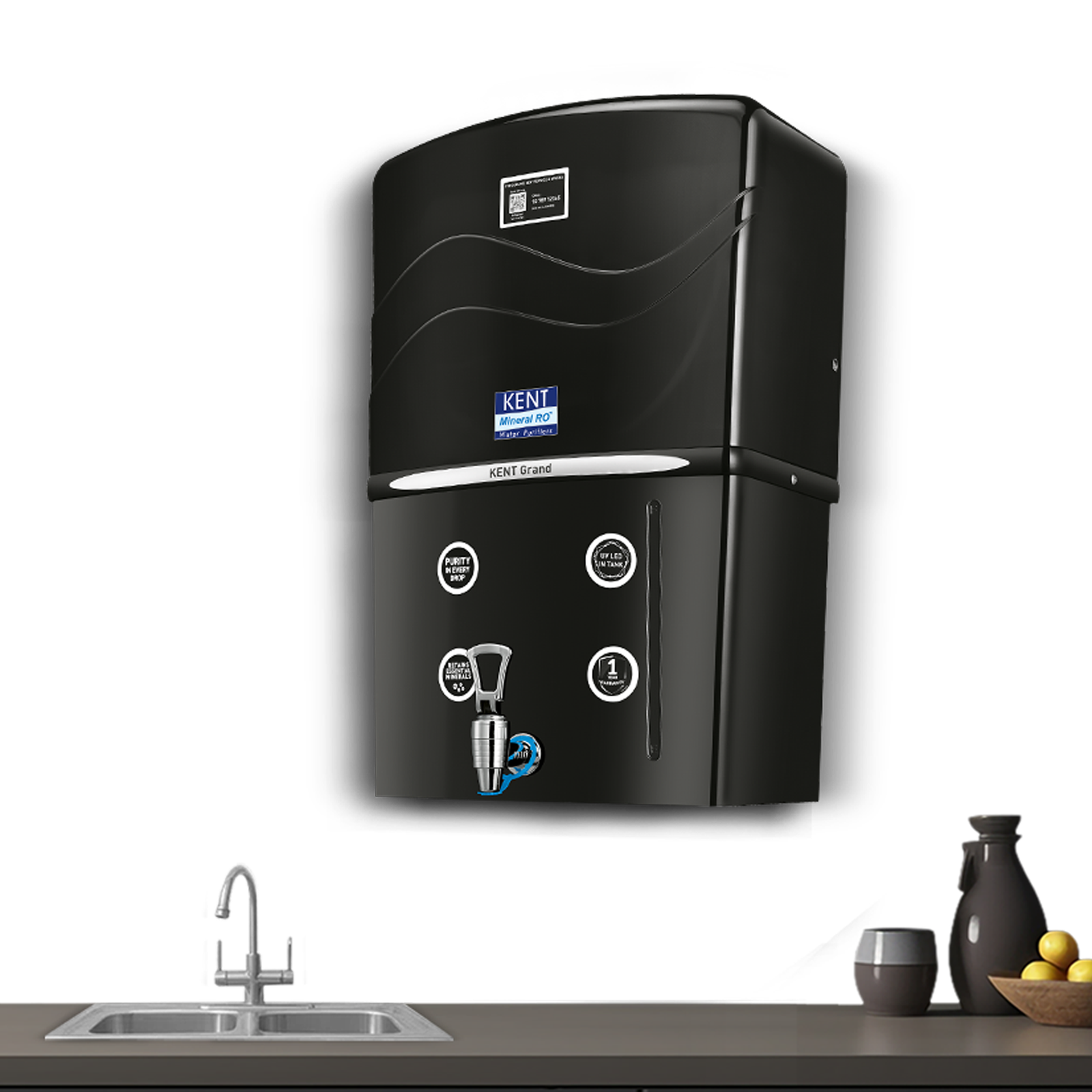 KENT Grand-B is all new, state of the art RO Water Purifier that utilises multiple purification process of RO+UF+TDS Control to make water pure and healthy. It is equipped with Mineral RO Technology that retains essential natural minerals in the purified water. Also, it comes with UV LED light in its storage tank that keeps purified water bacteria free and pure. Best suited for Indian homes and offices, this purifier is ideal for purification of brackish/tap water/municipal corporation water supply.